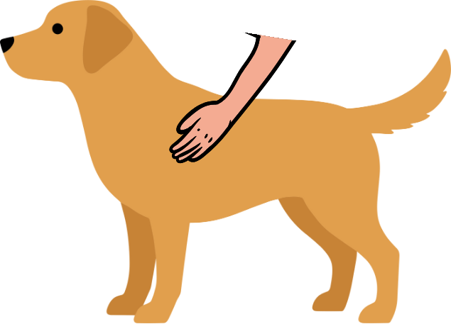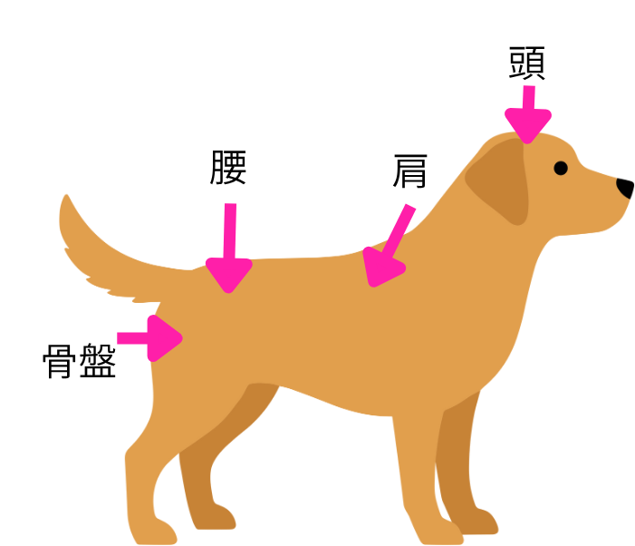 犬猫の背中に親指を置き、肋骨を優しく触る。長毛種は毛をかき分けて皮膚に直接触れる。